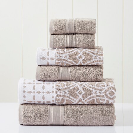 Modern Threads 6-Piece Yarn Dyed Jacquard/Solid towel set Monroe Fawn