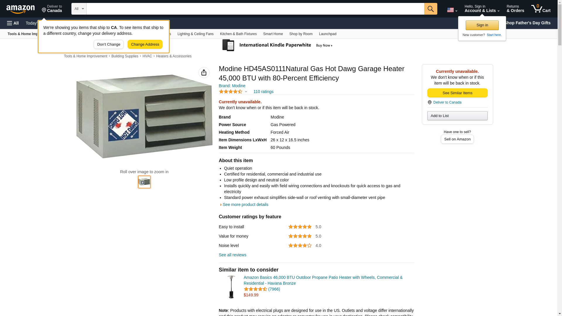 Modine HD45AS0111Natural Gas Hot Dawg Garage Heater 45,000 BTU with 80-Percent Efficiency Grey