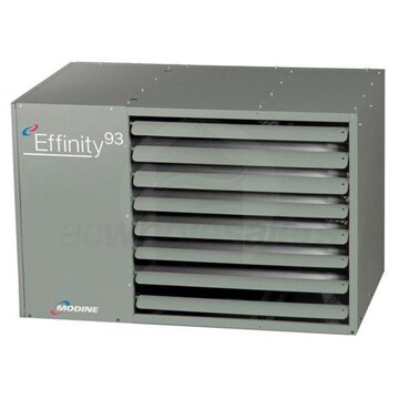 Modine's Effinity unit heater line is the most efficient gas-fired, condensing unit heater in North America. With ten model sizes available - from 55,000 to 310,000 BTU/hr - operating at up to 97% efficiency, the Effinity will dramatically lower energy costs and CO2 emissions. Additionally, three blower sizes are available on models 215-310, for even greater savings. Features: BTU: 135K. Flue Type: LP. Ignition: Direct Spark. Finger-proof fan guard. Two-point mounting kit. High-Efficiency Condensing. A selection of room thermostats. Blowers available on models 215-310. Stainless steel primary heat exchanger. 30, 60 and 90 degree air deflector hoods. Horizontal and vertical concentric vent kits. GFCI Surge protection adapter plug for service. Energy Saver Kit, mounted high for destratification. Condensate pump, mounting kit, and a PH neutralizing kit. American-Made Quality - All products are still proudly made in the USA. Conversion kits for natural gas and propane, including high-altitude kits. Safer Environments - Harmful combustion fumes are vented outside, away from your plants. Greener Solutions - Just one Effinity can lower CO2 output by thousands of pounds annually. Aluminized Steel Heat Exchanger Material - 115V - Only Available with Single Stage Controls. Dependable and Consistent Performance -Thanks to Modine's Conservicore Technology, corrosion concerns are eliminated, extending the life of your investment. Gentle Air Circulation and Even Temperatures -The Effinity guards against mold and maintains uniform wall-to-wall temperatures with consistent air circulation. Fuel Savings - At up to 97% efficiency, Modine's Effinity line is the most efficient condensing unit heater in North America. This allows you to save those otherwise wasted energy dollars for yourself.