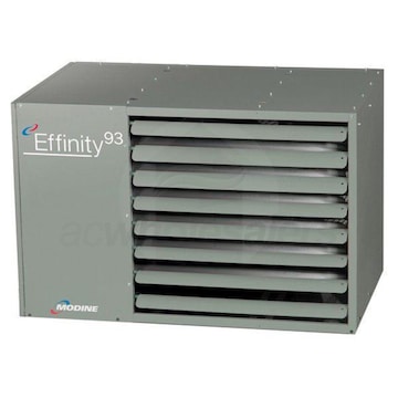 Modine's Effinity unit heater line is the most efficient gas-fired, condensing unit heater in North America. With ten model sizes available - from 55,000 to 310,000 BTU/hr - operating at up to 97% efficiency, the Effinity will dramatically lower energy costs and CO2 emissions. Additionally, three blower sizes are available on models 215-310, for even greater savings. Features: BTU: 65K. Flue Type: LP. Ignition: Direct Spark. Finger-proof fan guard. Two-point mounting kit. High-Efficiency Condensing. A selection of room thermostats. Blowers available on models 215-310. Stainless steel primary heat exchanger. 30, 60 and 90 degree air deflector hoods. Horizontal and vertical concentric vent kits. GFCI Surge protection adapter plug for service. Energy Saver Kit, mounted high for destratification. Condensate pump, mounting kit, and a PH neutralizing kit. American-Made Quality - All products are still proudly made in the USA. Conversion kits for natural gas and propane, including high-altitude kits. Safer Environments - Harmful combustion fumes are vented outside, away from your plants. Greener Solutions - Just one Effinity can lower CO2 output by thousands of pounds annually. Aluminized Steel Heat Exchanger Material - 115V - Only Available with Single Stage Controls. Dependable and Consistent Performance -Thanks to Modine's Conservicore Technology, corrosion concerns are eliminated, extending the life of your investment. Gentle Air Circulation and Even Temperatures -The Effinity guards against mold and maintains uniform wall-to-wall temperatures with consistent air circulation. Fuel Savings - At up to 97% efficiency, Modine's Effinity line is the most efficient condensing unit heater in North America. This allows you to save those otherwise wasted energy dollars for yourself.