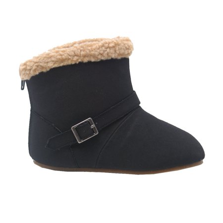 Tiny boots from Modit for your toddler girl will keep her snug and comfy. The black boots feature decorative buckle and plush faux fur trims. Ankle high boots are perfect for toddler girls. A convenient zipper closure for easy on/off.