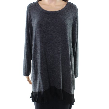 Mododoc NEW Black Women's Size 2X Plus Ruffled Hem Scoop Neck Sweater
