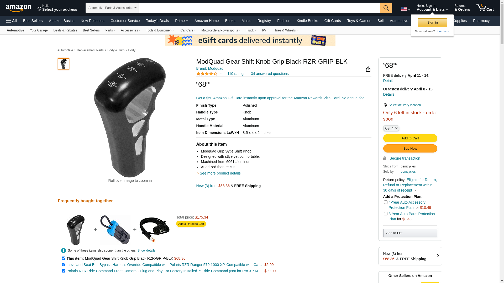 ![]() socalpowersports.com | RZR-GRIP-BLK | 1 | -2 | 1 | 1 @ $66.34 |