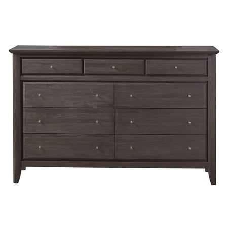 Wire brushed basalt gray finish with matte lacquer top coat Finish: Basalt Grey; Materials: Mahogany solid wood, mahogany veneer; Wire brushed basalt gray finish with matte lacquer top coat; Kiln-dried solid mahogany frame; Full extension ball bearing drawer glides for smooth, efficient operation; Removable felt-liners in top drawers; Durable, 5 sided hardwood plywood drawer box with english dovetail joinery and contemporary brushed chrome knobs; Drawer boxes stained to match exterior finish; Fitted with non-marking nylon glides; Center leg provides support and rigidity; Manufacturer will ship replacement parts at no charge for up to 1 year from date of delivery to correct defects determined at manufacturer's discretion to be related to manufacturing or workmanship; Dust frequently with a clean, lint-free cloth. Avoid using oily polishes or waxes. Avoid exposing your furniture to strong sunlight, heat outlets, open windows or dampness. Never allow liquids or chemicals to sit on your furniture. . Specifications:Overall Product Dimensions: 41" H x 64" W x 18" D; Product Weight: 175 lbs; Weight Capacity: 50 lbs/ drawer; 5 inch floor clearance; Interior Drawer Dimensions: Top Drawers: 2.5 x 15.75 x 12.75; Bottom Drawers: 5 x 25.75 x 12.75.