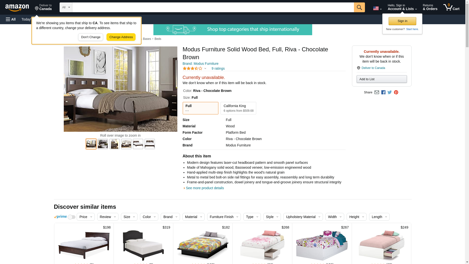 Modus Furniture Riva Platform Bed, Chocolate Brown, Full