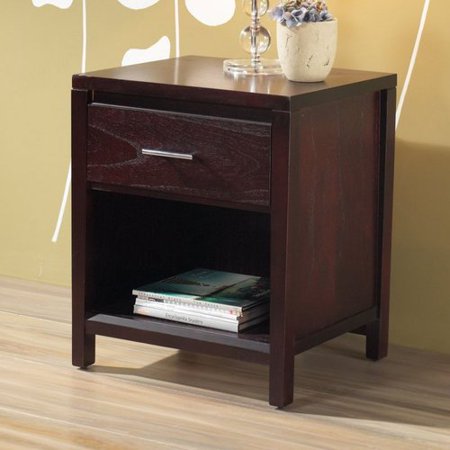 <p align="left">Together with a vast array of contemporary platform, low profile and sleigh bed styles, the Nevis collection blends the sleek and exotic with the functional. </p> <ul> <li> <div align="left"> Simple straight lined design uses gently tapered solid wood posts and recessed side panels to create an understated contemporary look </div> </li> <li> <div align="left"> Full extension ball bearing drawer glides </div> </li> <li> <div align="left"> Sanded and stained solid wood drawer boxes with English dovetail joinery </div> </li> <li> <div align="left"> Constructed from Tropical Mahogany solids and Eastern Ash veneers </div> </li> <li> <div align="left"> Brushed chrome bar pulls contrast beautifully against the dark wood case </div> </li> <li> <div align="left"> Drawer boxes and wood frames are corner blocked to ensure rigidity and lasting quality </div></li> </ul> <br />Materials: Solid Wood/Wood Veneer <br />Disclaimer: <br />Collection: Nevis <br />Dimensions: Width: 23in - Height: 26in - BackToFront: 19in <br />Product will ship via: UPS/Fedex Ground <b>Finish:</b> Espresso, <br /> <b>Dimensions:</b> BackToFront: 19in - Height: 26in - Width: 23in