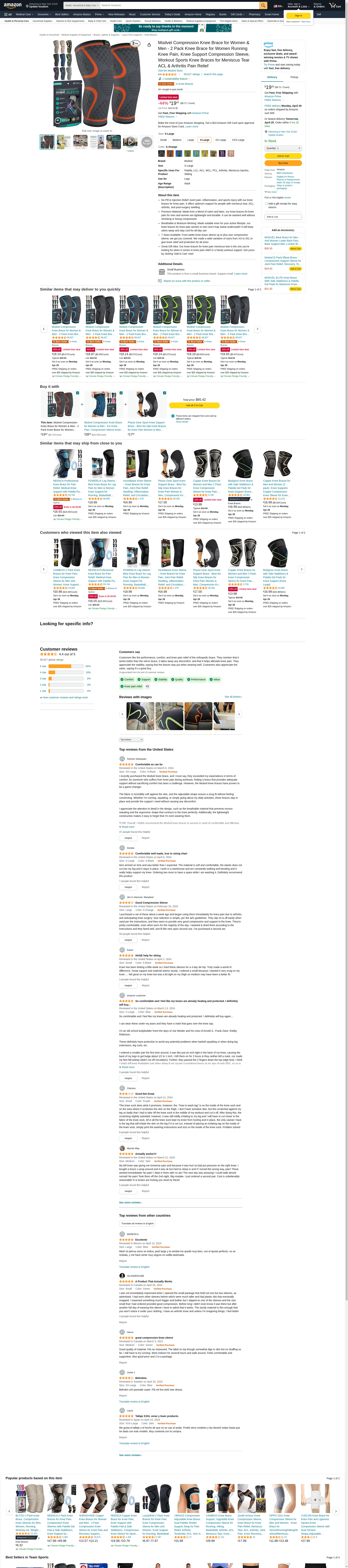 Modvel 2 Pack Knee Compression Sleeve | Knee Brace for Men & Women | Knee Support for Running, Basketball, Weightlifting, Gym, Workout, Sports: Maxedbuy.com
