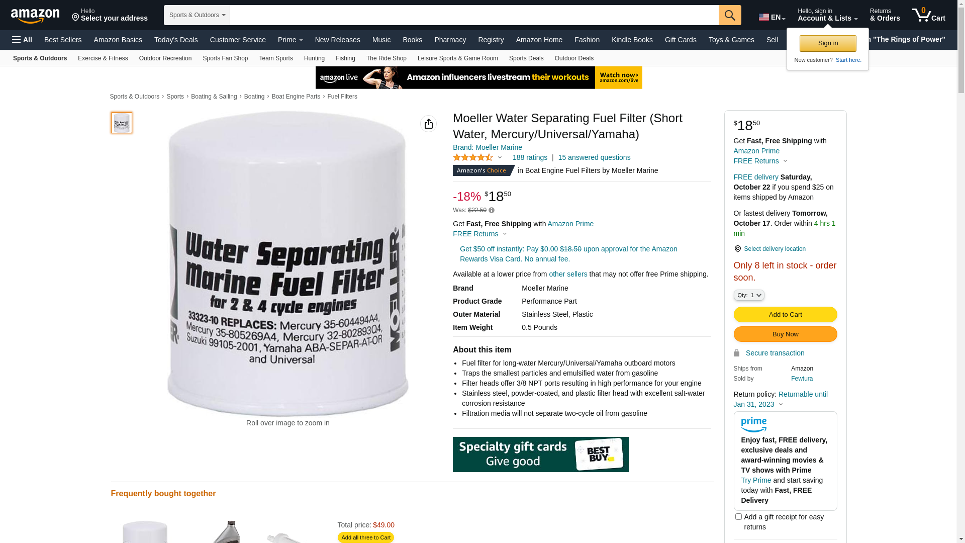 Moeller Water Separating Fuel Filter (Short Water, Mercury/Universal/Yamaha)