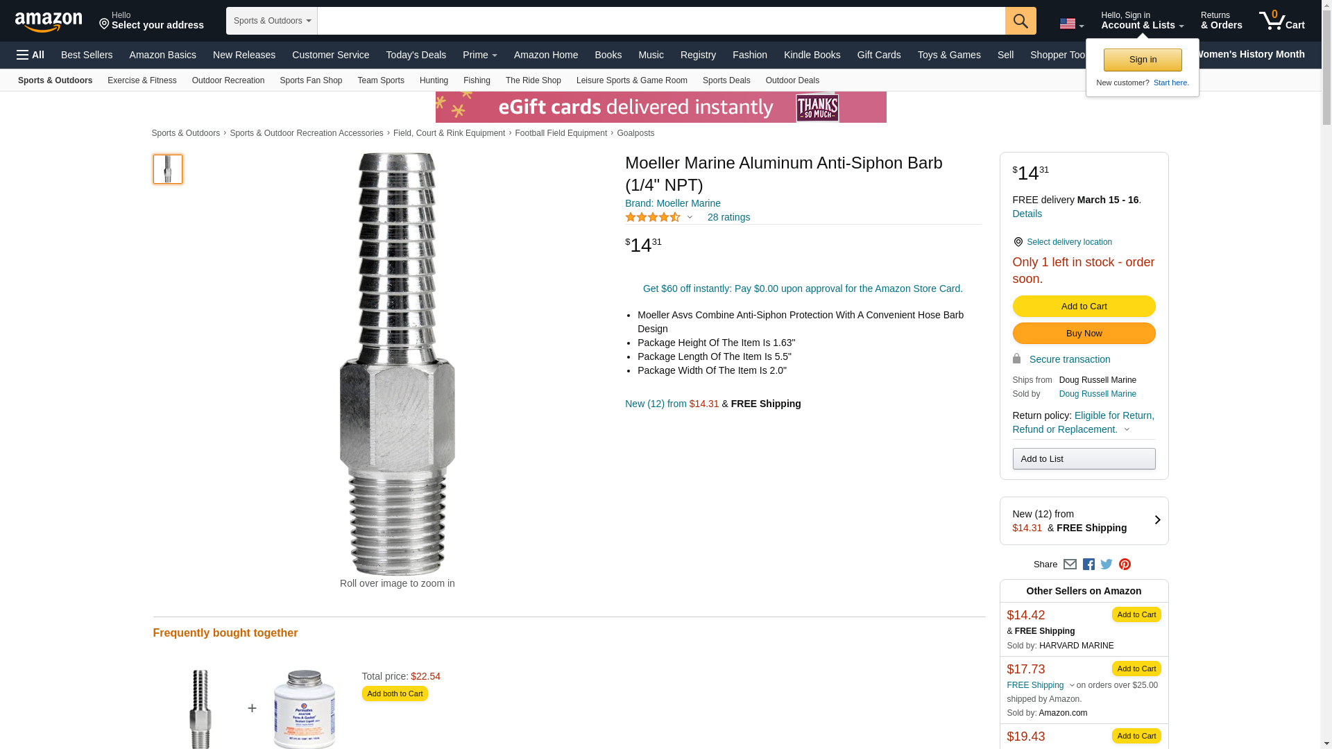 ![]() Wholesale Marine | MOE-033801-10 | 1 | -2 | 1 | 1 @ $13.99 |