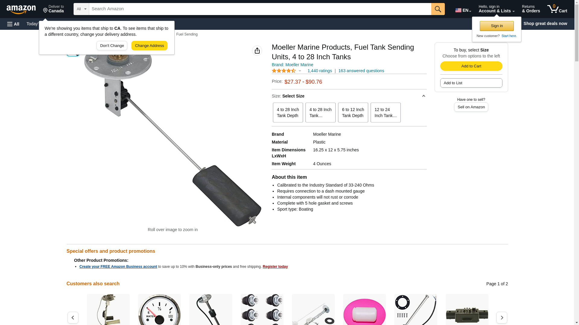 Moeller 035729-10, Fuel Tank Sending Unit, Electric, 12 to 24 Inch Tank Depth