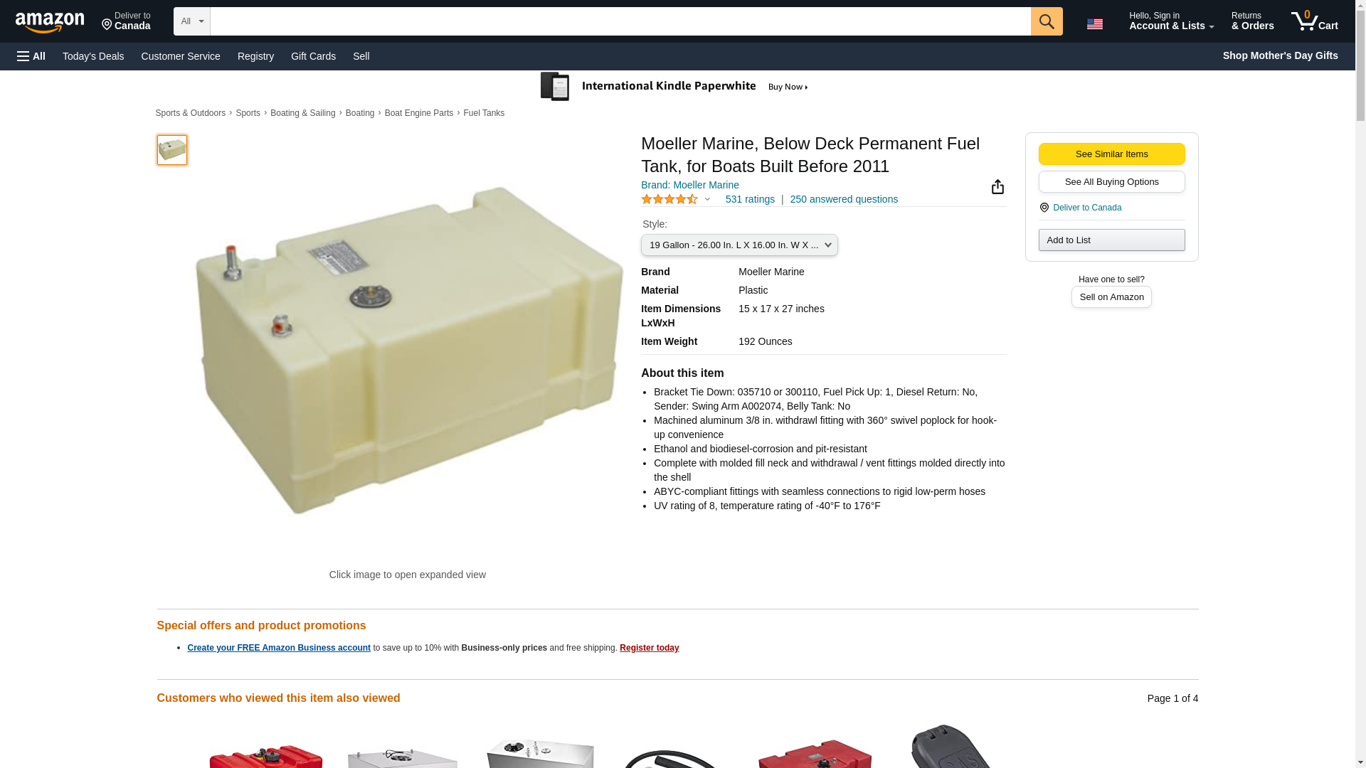 Moeller 19 Gal. Below Deck Fuel Tank, #032519