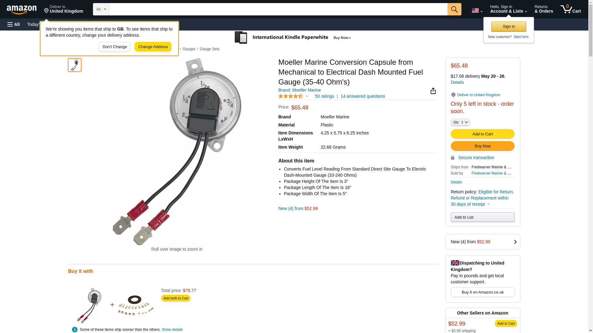 "Moeller Marine Conversion Capsule From Mechanical To Electrical Dash Mounted Fuel Gauge (35- 40 Ohm's)"