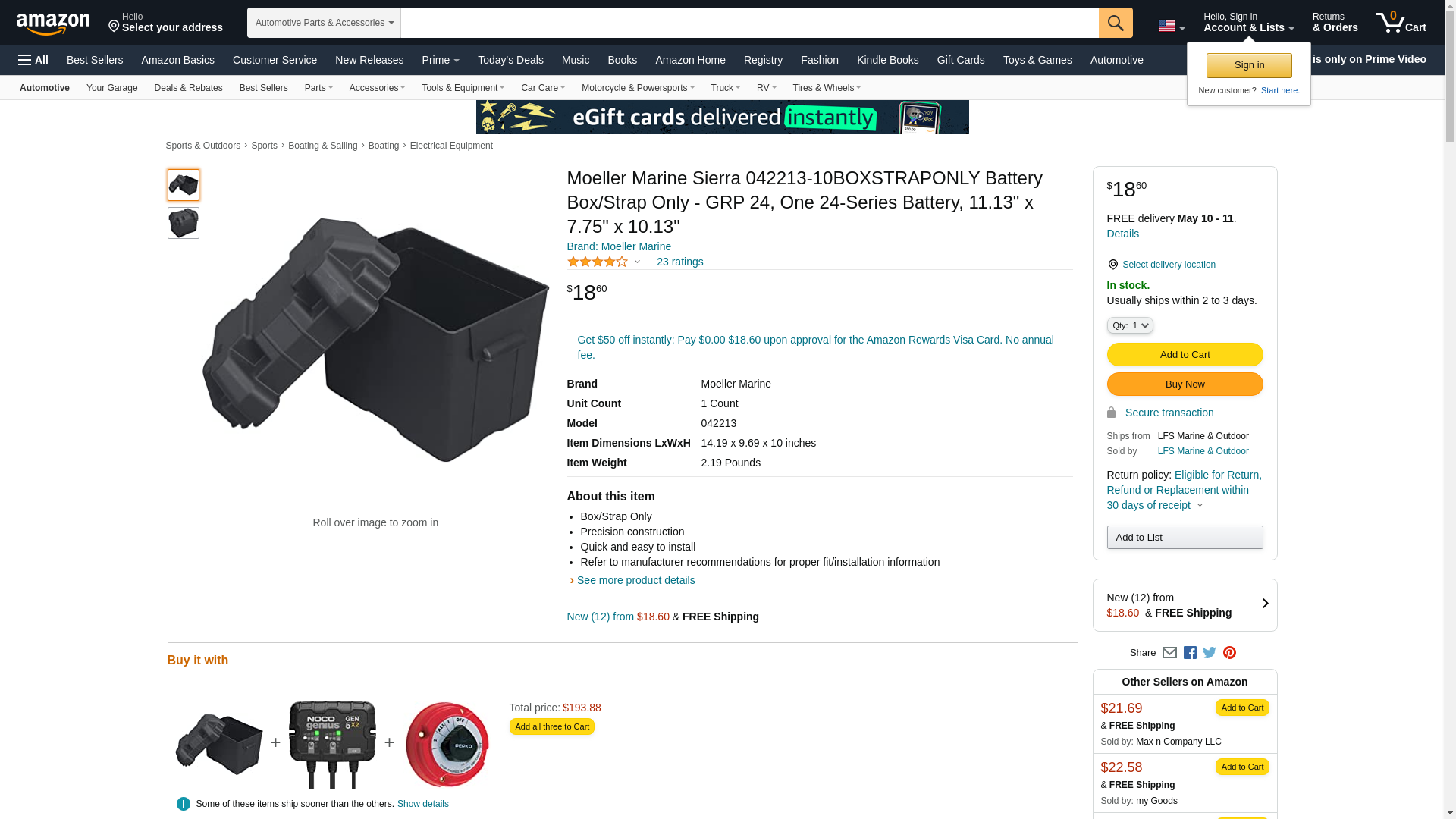 Moeller Injection-Molded Marine Battery Box (One 24-Series Battery, 11.13" x 7.75" x 10.13")