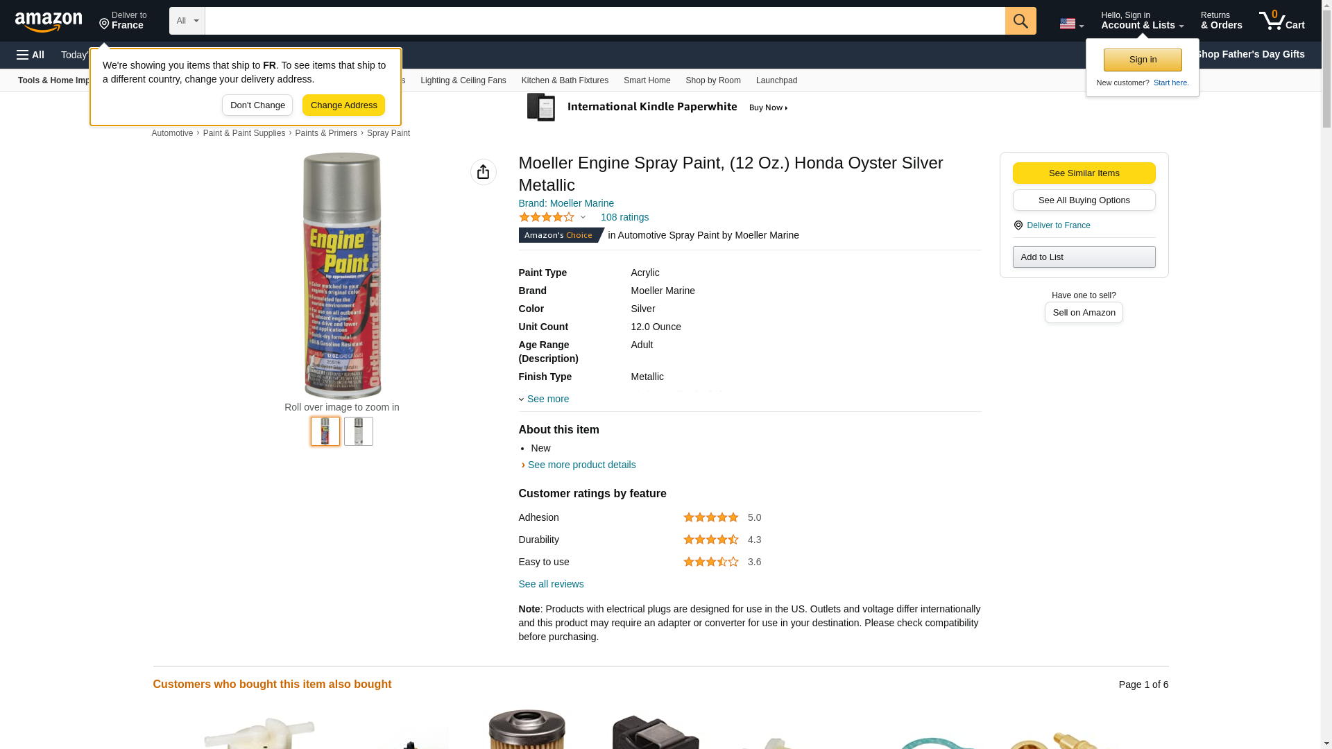 12 oz Moeller Honda Silver Metallic Touch up Paint. Matches your engine's original color.For total engine coverage, use Moeller's quick drying Engine Paint. This heat and solvent resistant acrylic lacquer is formulated for the extended staying power boat engines need. Color matched to your engines original color. For Use on all outboard and inboard engines, sterndrives and lower unit applications. 12oz spray can.