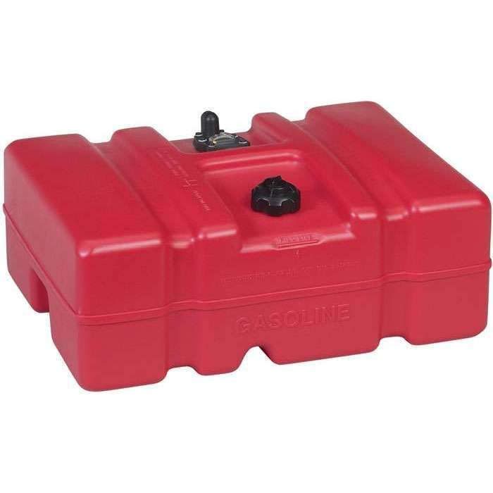 Moeller Fuel Tank 12gal Portable Low Profile #114630013LPEPA/CARB compliant portable fuel tanks are manufactured from highdensity polyethylene with ultraviolet inhibitors. Advanced manufacturing techniques provide the highest quality product components available and meet the new "low permeation" standards put in place by the EPA/CARB regulations effective 1/1/2011. All our portable tanks 12 gallon and under meet current United States Coast Guard, and ABYC Standards.Low profile and seamless onepiece construction make these tanks easytocarry and easytostore. A reserve fuel area is designed right into the tank by means of a partitioned bottom. When the gauge registers empty, simply tilt the tank and the reserve fuel supply becomes available. 90 degree fuel withdrawal assembly that rotates 360 degrees to reduce fuel line kinks and a direct sight fuel gauge with glass lens for years of clear viewing.Dimension: 241/4" L x 18" W x 11" H w/cap