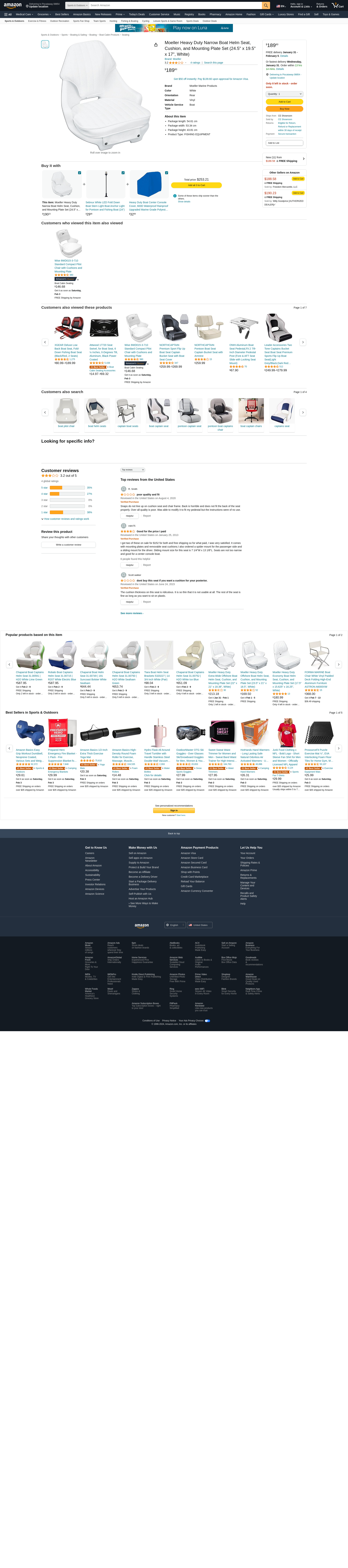 Moeller Heavy Duty Narrow Boat Helm Seat, Cushion, and Mounting Plate Set (24.5" x 19.5" x 17", White)