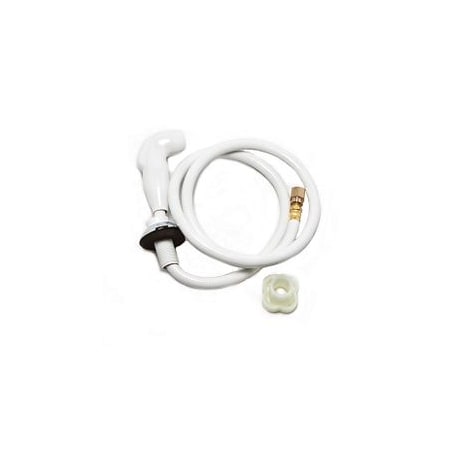 - White Plastic Spray head with integral hose with external thread on hose