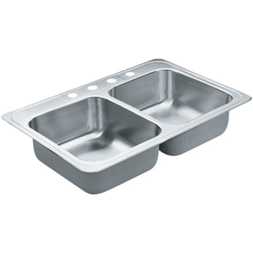 Moen 22867 Excalibur 4 Hole Stainless Steel 22 Gauge Double Bowl Drop In Sink, Stainless