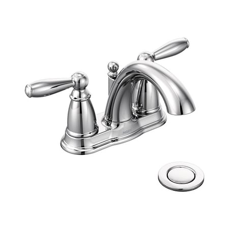 Moen Brantford Chrome Two-Handle Low-Arc Traditional Centerset Bathroom Faucet with Drain Assembly, 6610, 0.5