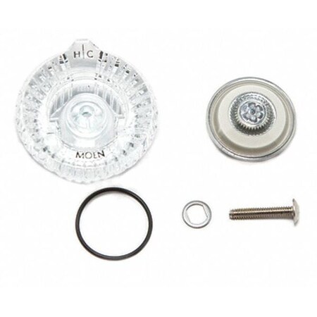 Knob handle kit, Legend & Moentrol 1 handle tub/shower, clear knob with white & chrome insert