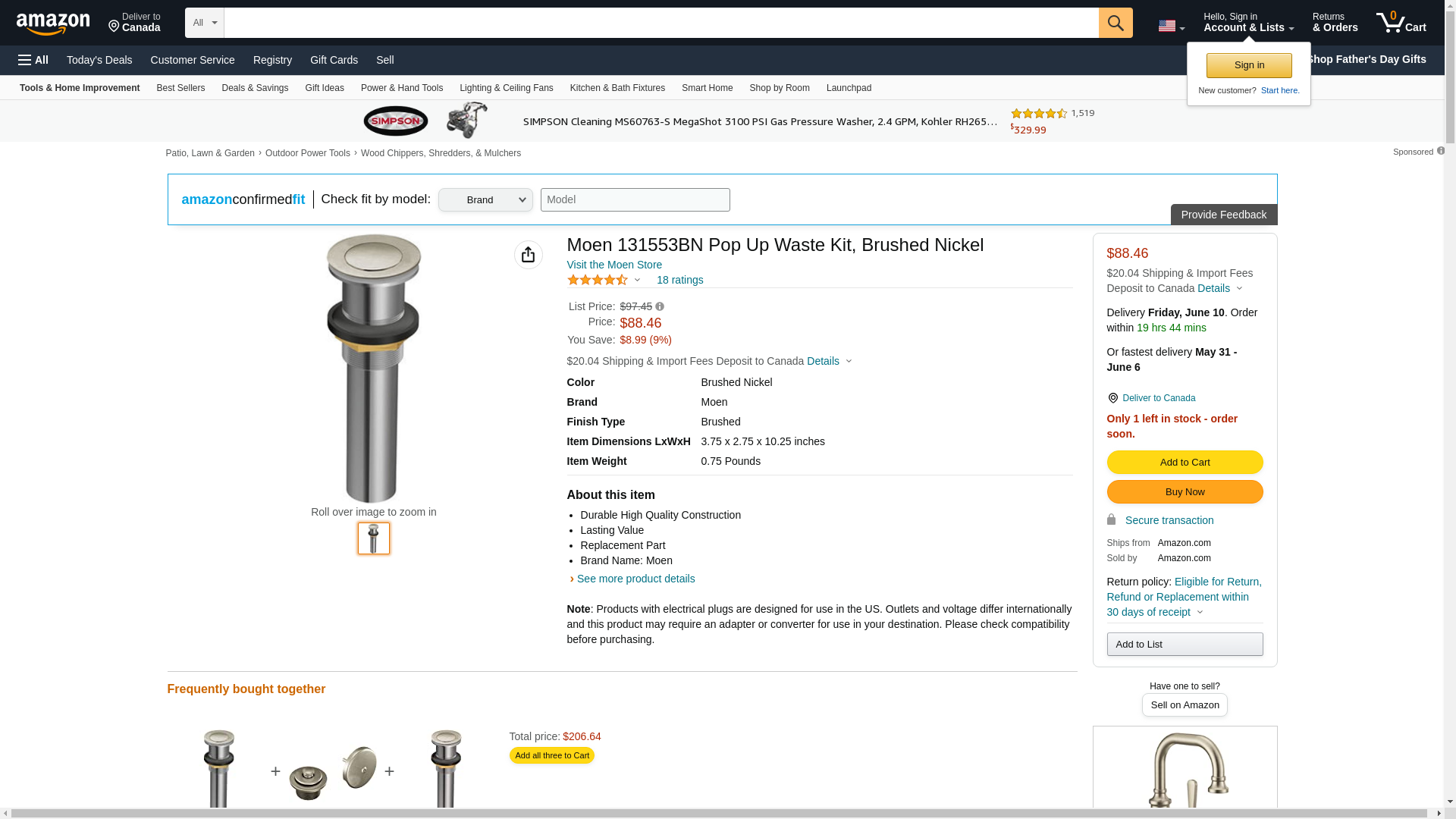 Moen 131553BN Pop Up Waste Kit, Brushed Nickel