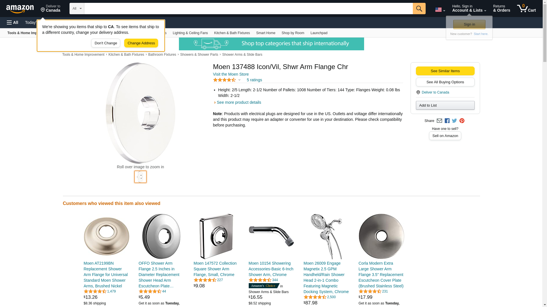 Moen 137488 Shower Arm Flange, ChromeMoen 137488 Shower Arm Flange, Chrome Features: Replacement shower arm flange Chrome finish to create a bright, highly reflective, cool grey metallic look* Secondary image used for color/finish ONLY