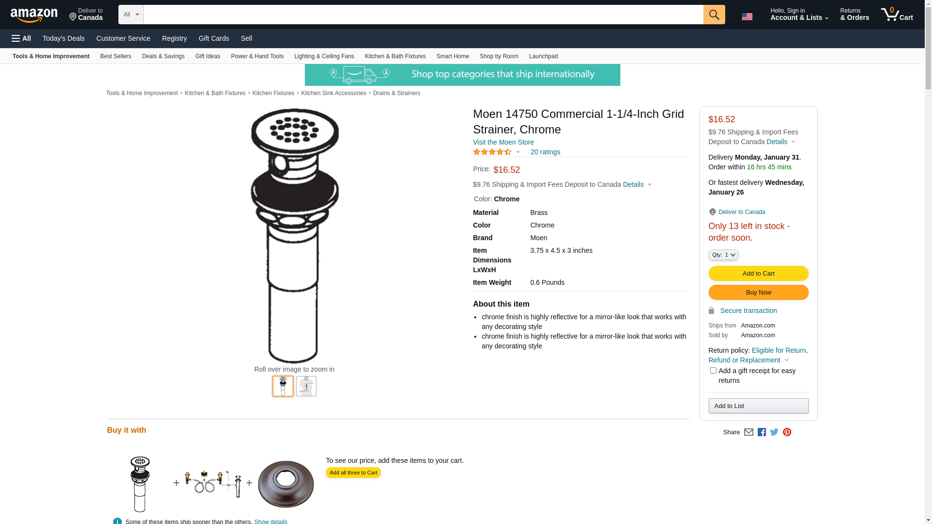 Moen Moen 14750 1-1/4" Grid Strainer Drain Assembly