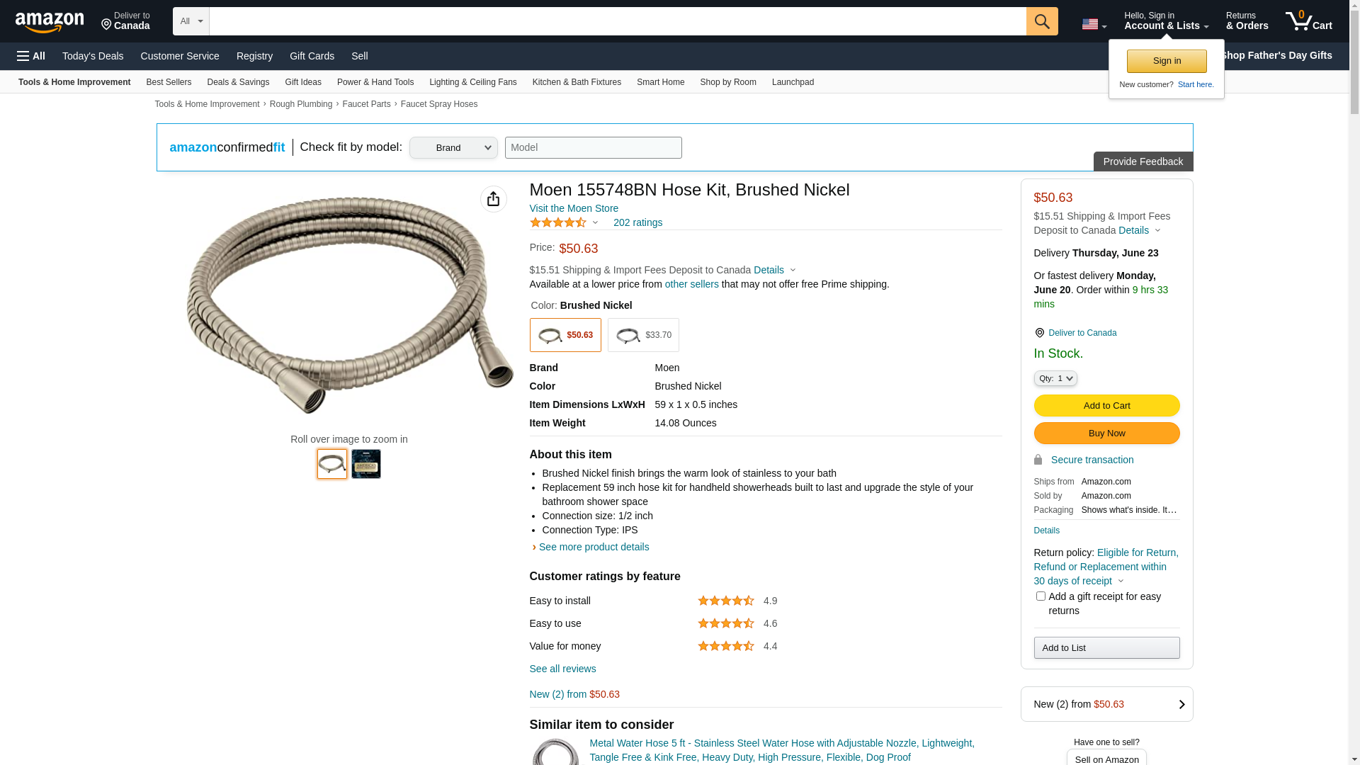 Moen Hose Kit Brushed Nickel, 155748BN, 59 x 1 x 0.5 inches