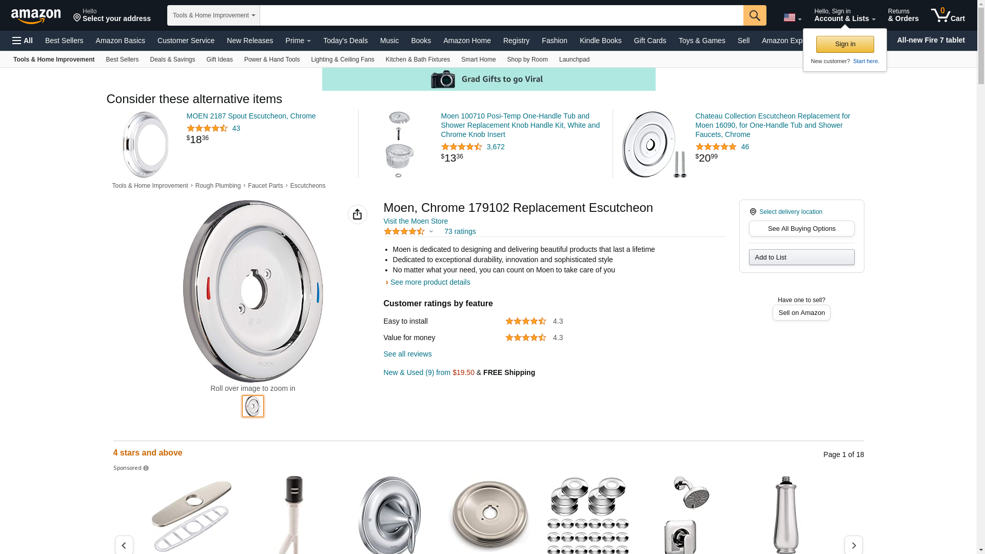 Moen, Chrome 179102 Replacement Escutcheon, Size