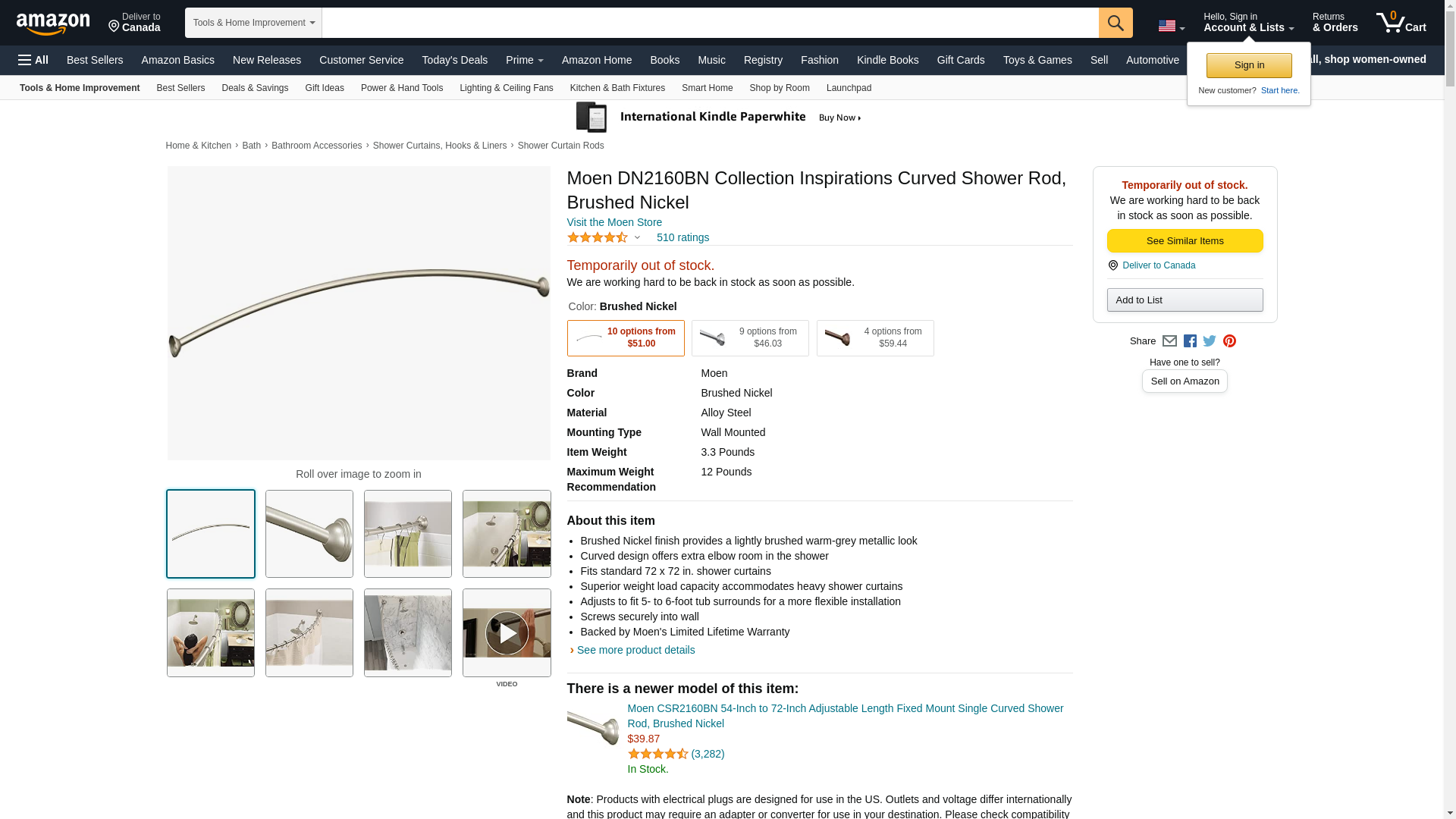 Moen(r) Inspirations 54-72in Adjustable Curved Shower Rod in Brushed Nickel (DN2160BN). More details: Curtain Length:...