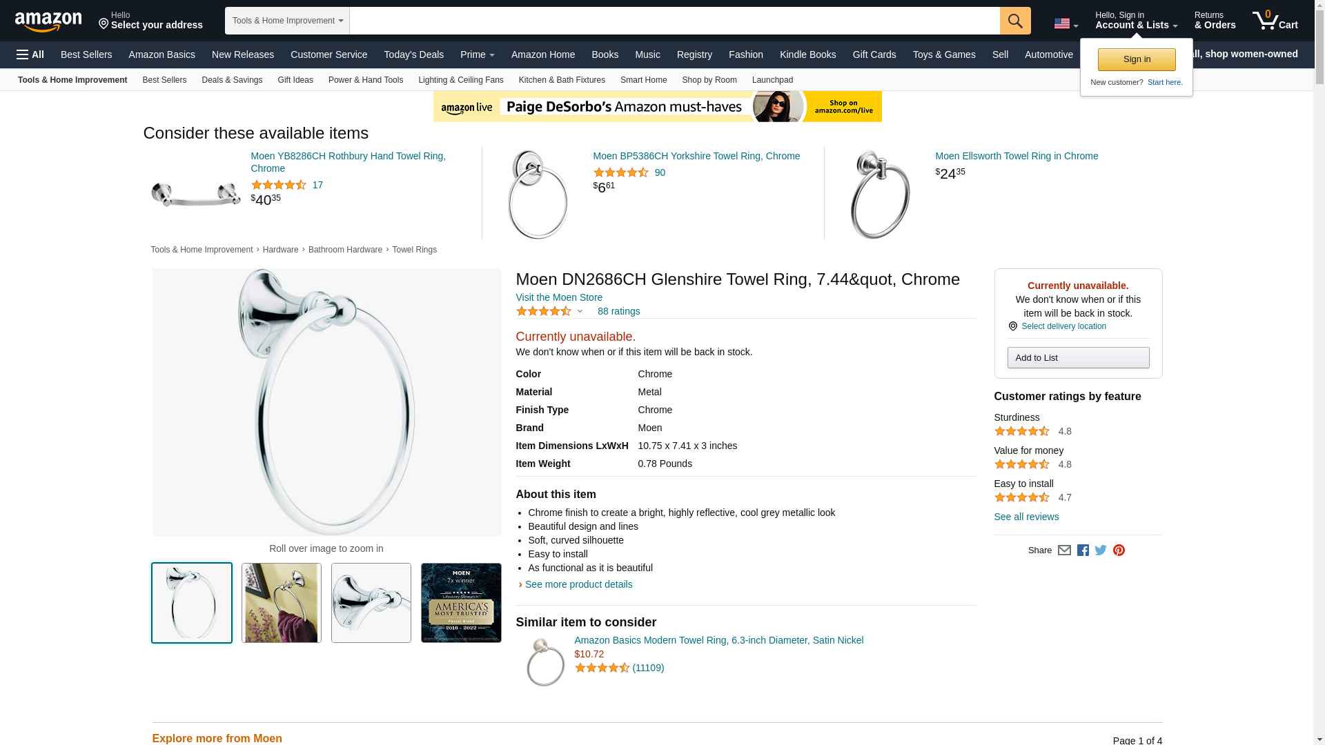 Moen DN2686CH Glenshire Towel Ring, 7.44", Chrome