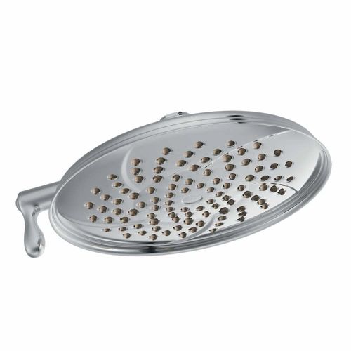 The MOEN Isabel 2-Spray 9 in. Showerhead in Chrome allows you to choose between massage spray and concentrated spray to help customize your showering experience. It features self-pressurizing Immersion rain shower technology that is designed to channel the water through the showerhead with more spray power than other types of showerheads.