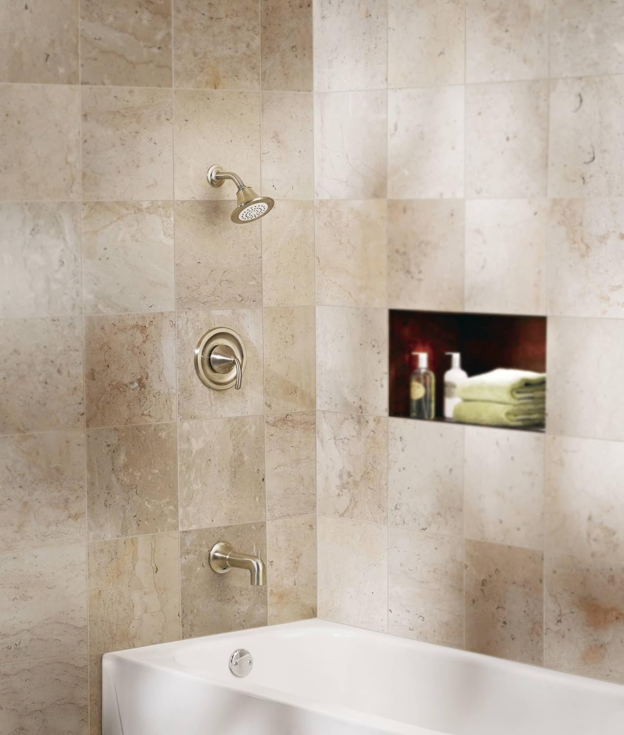 - PosiTemp pressure-balancing valve maintains water pressure and controls temperature