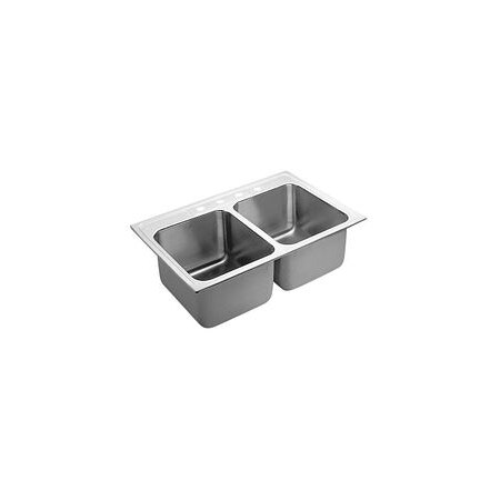 Moen 22121Q M-DURA 18 Gauge Drop-In Double Bowl Stainless Steel Kitchen Sink with Two Dimensionally Equal Bowls, Stainless Steel