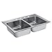 Moen 22213 Camelot 4 Hole Stainless Steel 20 Gauge Double Bowl Drop In Sink, Stainless