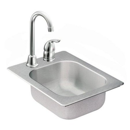Moen 22245 Camelot Stainless Steel 20 Gauge Single Bowl Drop in Sink with Faucet, Stainless