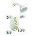 243CP Finish: Chrome and Polished Brass Features: -Three Function Transfer Valve Vertical Spa Set.-M-PACT system.-Valve available in Chrome.-Pull-on/push-off operation of temperature and volume, rotational control of transfer valve.-Temperature operates through an 180 arc of handle travel (full cold to full hot).-Adjustable temperature limit stop to control maximum hot water temperature.-180 rotation of transfer valve handle with stops.-Showerheads 2.5 gpm (9.5 L/min) max.-Pressure balancing mechanism maintains selected discharge temperature.-Third party certified by CSA to meet CSA B-125, ASME A112.18.1M.-Pressure balancing valve design with integral check stops, .5'' CC connections, built in 3-function transfer valve.-Pull-on/push-off operation of temperature and volume.-Rotational control of transfer valve.-Temperature operates through an 180 degree arc of travel handle from full cold to full hot.-Adjustable temperature limit stop to control maximum hot water temperature.-180 degree rotation of transfer valve handle with stops.-Pressure balancing mechanism maintains selected discharge temperature to within 2 degrees.-1225 cartridge design for Moentrol valve.-1200 cartridge design for transfer valve.-Third party certified by CSA to meet CSA B-125, ASME A112.18.1M. Warranty: -Transfer valve has lifetime limited warranty against leaks, drips, and finish defects to the original consumer purchaser.-5 year warranty if transfer valve is used in commercial installations.