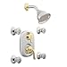 The simple beauty of Monticello provides faucet, tub, showering and accessory options to create a coordinated look in any home. This Chrome/polished brass Moentrol vertical spa is manufactured by Moen, the #1 faucet brand in North America. This product features a chrome/polished brass Finish.