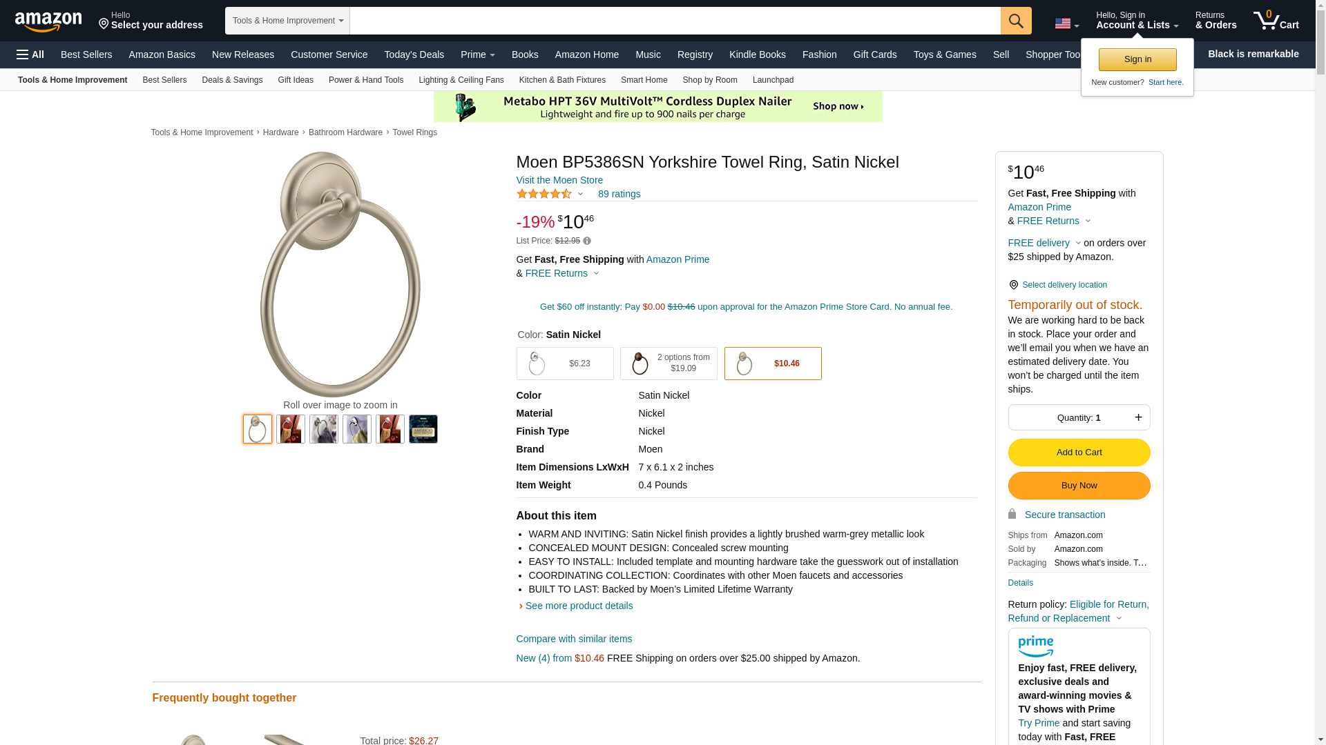 Moen BP5386SN Yorkshire-Towel Ring, Satin Nickel