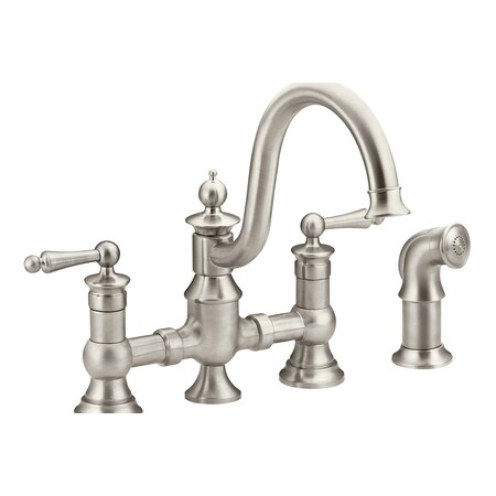 Moen S713SRS Waterhill Two-Handle Traditional Bridge Kitchen Faucet with Side Sprayer, Spot Resist Stainless