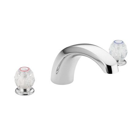 T999 Finish: Chrome Shown in Chrome Features: -Two Handle Roman Tub Trim Kit.-Available in Chrome or Polished Brass.-M-PACT system.-Valve 15-17 gpm (56-64 L/min) max.-Maximum deck thickness after rough-in 2-1/8.-The tub fill spout is a slip fit design and the supplies are 1/2'' copper tubing.-Designed to deliver 18 gpm at 40 psi.-1248 cartridge design.-Third party certified by CSA to meet CSA B-125, ASME A112.18.1M. Color/Finish: -Acrylic knob style handles with hot and cold color indicators. Collection: -Chateau Collection.