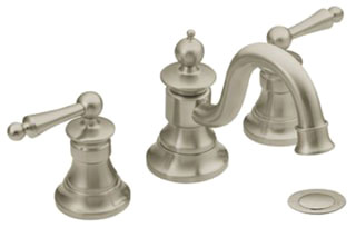 Moen Waterhill Two Handle High Arc Bathroom Faucet. Two handle lever handles make it easy to adjust the water. Rotating Spout. Built on the Moen M PACT common valve system, allowing you to update the faucet style in the future without replacing any plumbing. Faucet handles can be installed at any distance between 8 inch to 16 inch for a more customized widespread installation. Aerated flow is ideal for everyday bathroom tasks, like brushing teeth and washing hands. Complies with Americans with Disabilities Act (ADA) specifications. Meets epa WaterSense(r) criteria to conserve water without sacrificing performance. Meets current legislation, including ab1953 (california) and s152 (vermont). Limited lifetime warranty. Valve sold separately. Center Dimensions: 8 inch 16 inch. Drain Assembly: