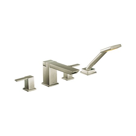 Moen TS904BN 90 Degree Two-Handle Roman Tub Faucet Includes Hand Shower without Valve, Brushed Nickel