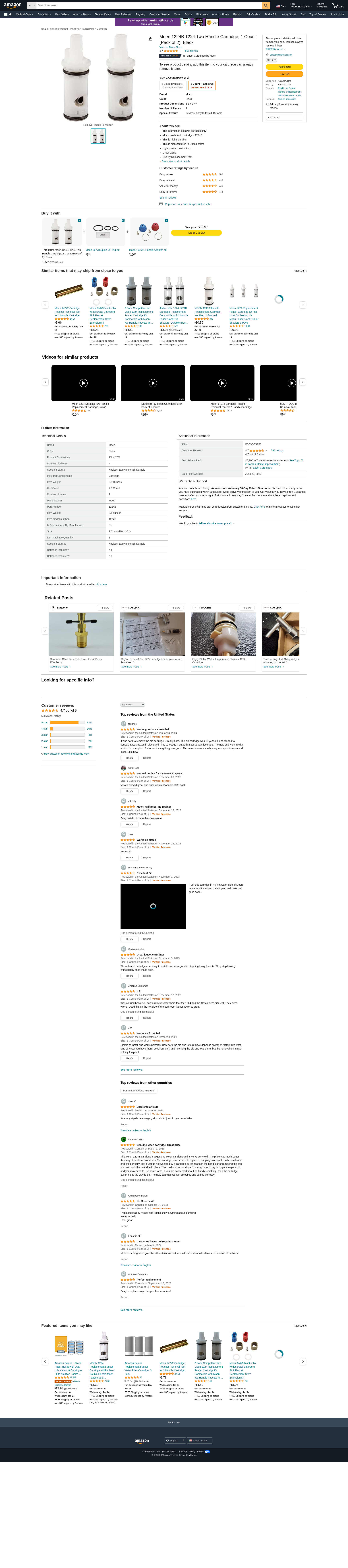 Moen 1224B 1224 Two Handle Cartridge, 1 Count (Pack of 1), Black