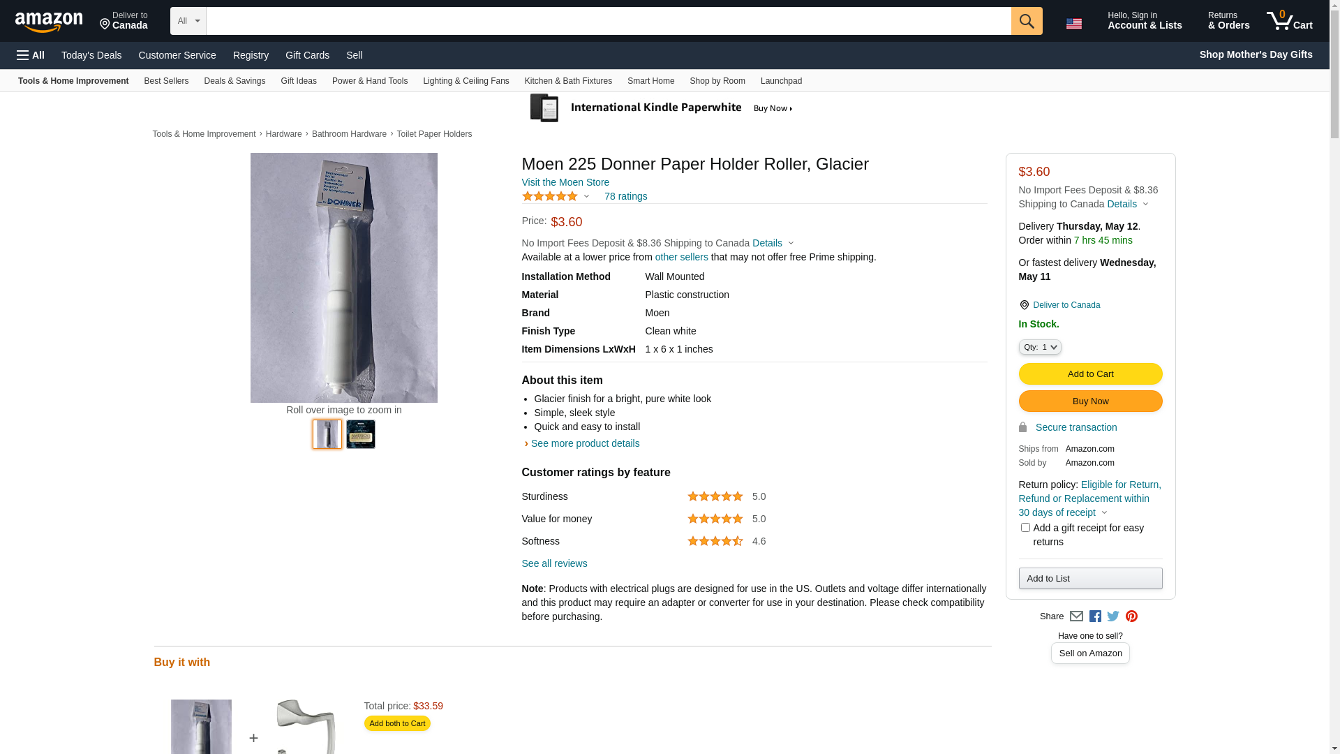 Moen 225 Donner Paper Holder Roller, Glacier Small