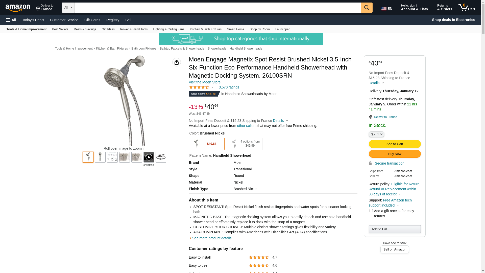 | Feature | Spot Resist Brushed Nickel finish resists fingerprints and water spots for a cleaner looking bath |