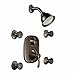 The MOEN Vestige Moentrol Vertical Spa in Oil Rubbed Bronze is a 2-handle trim kit for a home bathroom spa. This kit includes 4 body sprays and a showerhead, and it features durable cast-metal construction.