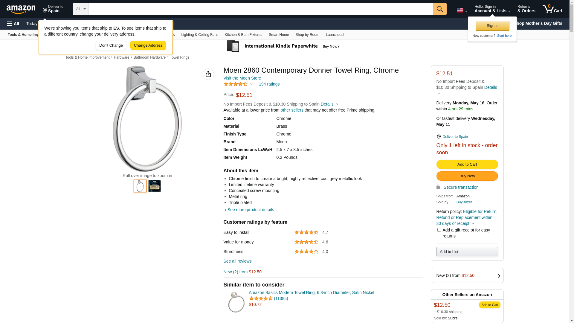 Moen 2860 Contemporary Donner Towel Ring, Chrome