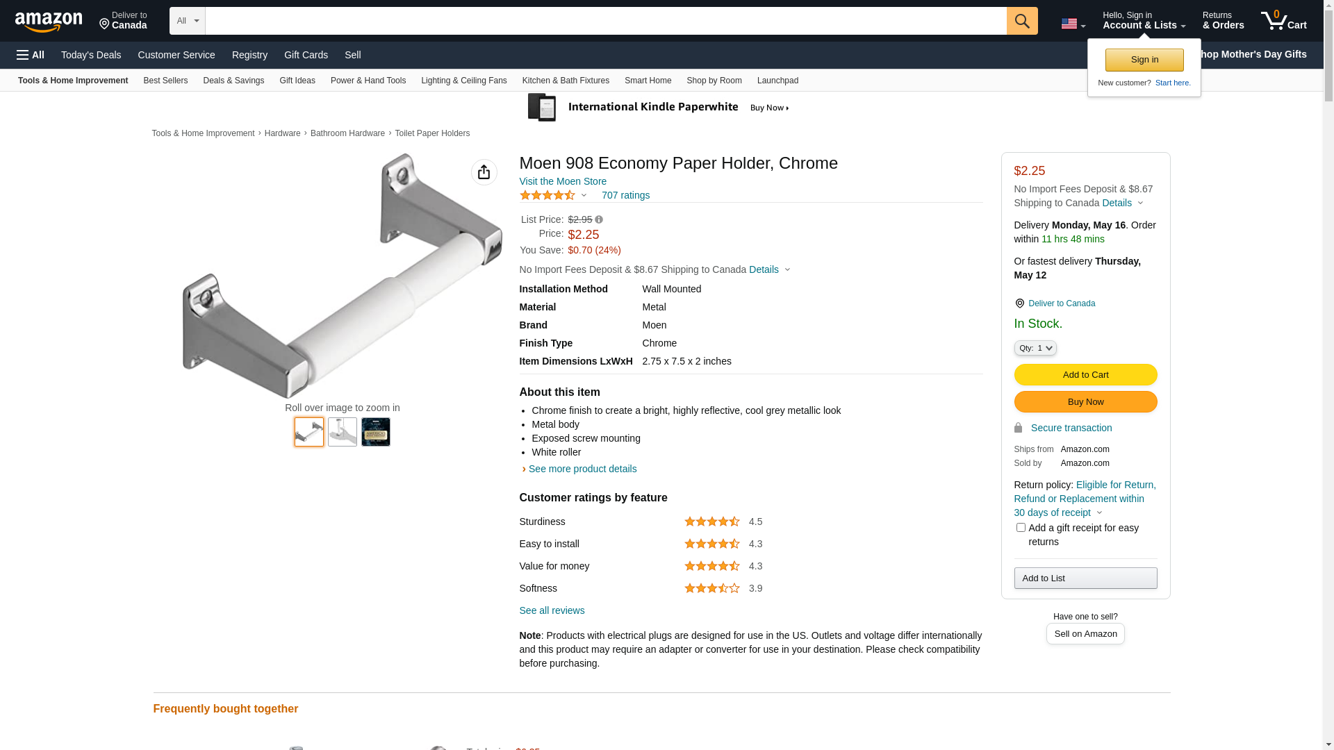 Moen 908 Economy Paper Holder, Chrome