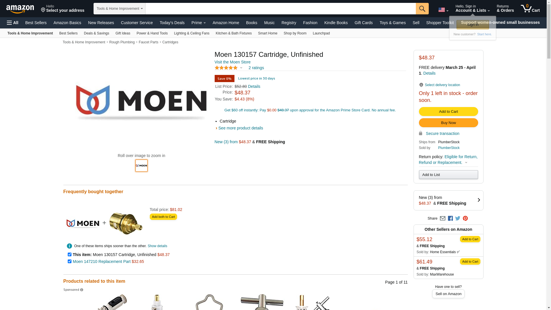 ![]() faucet-warehouse.com | 130157 | 1 | 1 | 1 @ $36.57 | |
